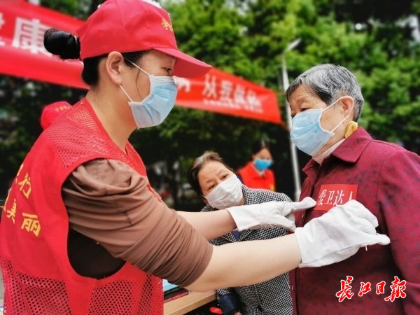 “就是您了!给您贴上爱卫达人胸标,您可以领一组除四害药品。”古南社区工作人员看到83岁的陈银兰和69岁的章汉萍正在社区广场上帮忙清扫垃圾,还主动维持现场秩序,发动居民朋友戴好口罩,保持间距,参加清洁家园活动,于是为她们贴上爱卫达人胸标。陈银兰告诉记者,她在电视上掌握了不少清洁妙招,将破旧衣物制成抹布、拖把,每天在家喷洒消毒液,保持屋内通风整洁。