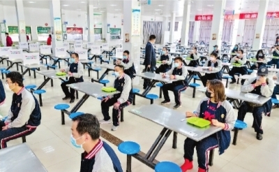 武钢三中拟将高三年级的每个班一分为二,在教师不变的情况下,分2个教室小班上课。每个教室的人数少于30人,单人单座,学生之间保持1米以上的距离。学校对学生采取送餐制,每个班的上课教室与用餐室都是分开的。市二十三中将为每班配备双教室,即一个行政教室,一个走班教室。洪山高中已为高三复课师生人员和车辆制作出入证,走读生凭证出入,住读生除周末返家外,平时不允许进出。开发区一中校办负责人介绍,在餐饮方面,学校将统一安排一日三餐,不允许送饭或叫外卖。