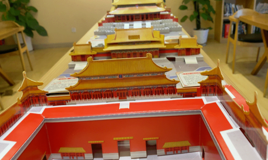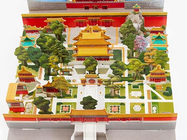 “书打开后,全场是3.2米,有大小零部件数百个,故宫沿中轴线的大型建筑几乎都收纳进去了。”立体图书设计专家王伟解释,有的地方还是“折中折”,暗藏一些小知识。