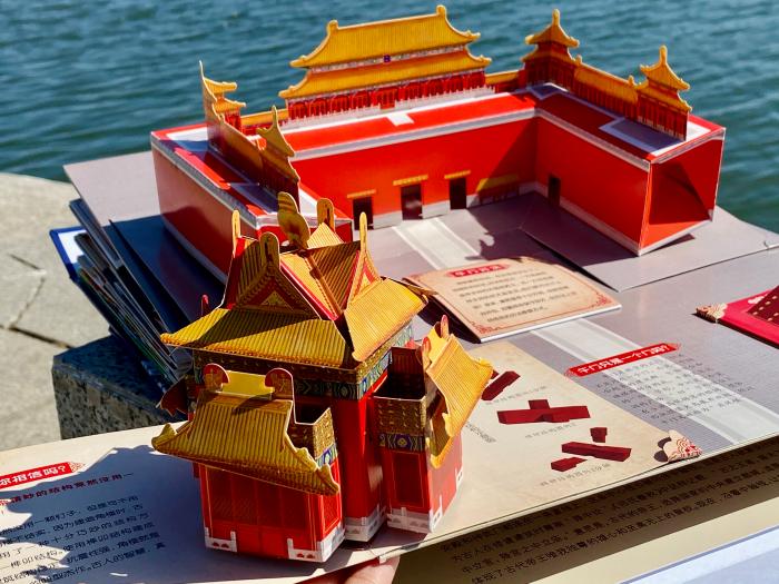 “我研究角楼比较早,先做了一个缩小版的模型。”王伟说,故宫角楼看似规格不大,结构却很复杂,几经研究,最后,书中的角楼由多达数十片纸片结构拼成,尽量体现它的精致。