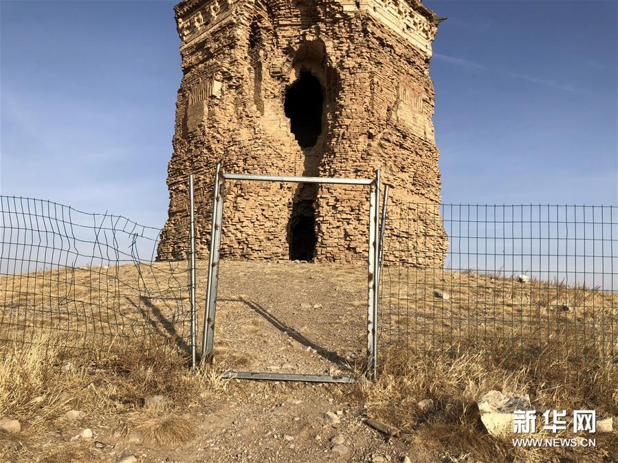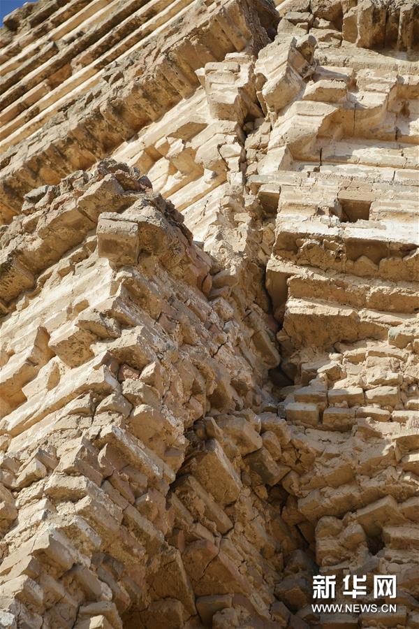 武安州辽代白塔塔基向里收缩了至少一米,面砖四坠(1月18日摄)。新华社记者 安路蒙 摄