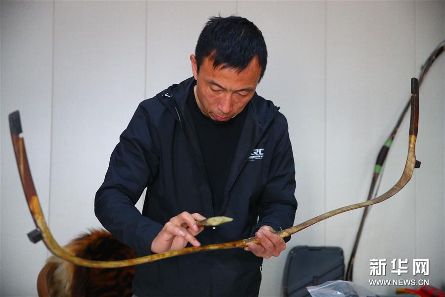 鄂建烨在加热弓胎以便调整弓形(2019年10月19日摄)。竹子、木料、牛角……位于沈阳市于洪区的一间平房里堆满各种制作传统弓箭的原料。这间房子的主人,今年45岁的鄂建烨是沈阳市非物质文化遗产代表性项目——锡伯族弓箭传统制作技艺的传承人。 鄂建烨出身于制弓世家,15岁开始跟随爷爷学习制作锡伯族传统弓箭。制作一张好的锡伯族筋角弓起码需要一年以上时间,虽然工序繁多复杂,但鄂建烨依旧严格按照古法制作锡伯族传统筋角弓,因其制作的弓箭质量上乘而广受传统弓箭爱好者的好评。 在制弓之余,鄂建烨还开办传统弓箭俱乐部并积极参加各种射箭比赛,力图将这项技艺传承下去。新华社记者 龙雷 摄