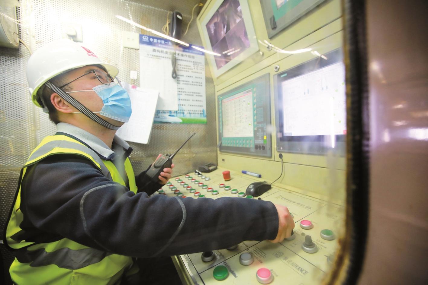 地铁8号线,技术员操纵盾构机掘进