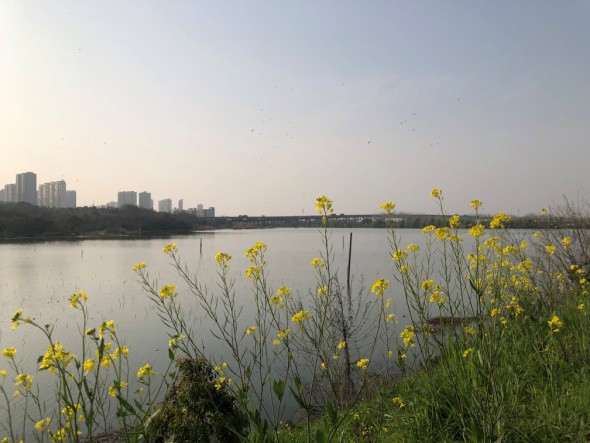 释义:暖暖的阳光照在石洋湖面上,波光粼粼,和风微醺使游人陶醉。湖边尽是湿湿的泥土、红红的石楠叶子和绿油油的野草。汉江两岸杨柳也绿了、樱花也开了,京城的春天应该来得晚一些,这样当我回去的时候,还可以继续享受春天!