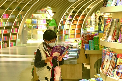 4月22日,位于北京王府井新华书店三层的“怀中读阅童馆”,一名小读者正在读书。记者 韩寒摄/光明图片