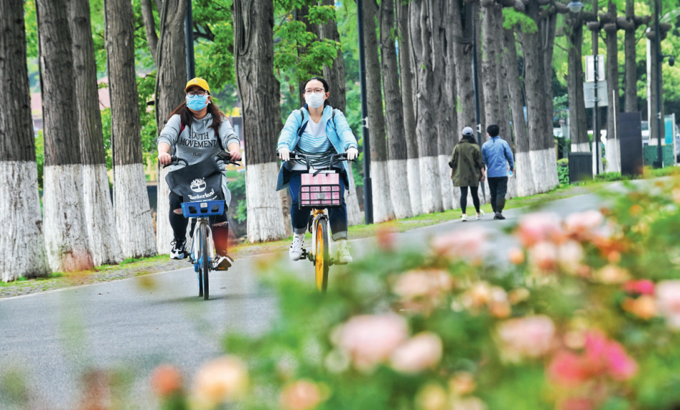 23日,东湖游船楚风园-磨山观光线(日游线)已恢复运营,提前预约的年卡游客扫码、测温后,在楚风园码头有序登船游览。东湖绿道上,骑行和徒步的市民移步换景,欣赏沿途盛开的月季、杜鹃。