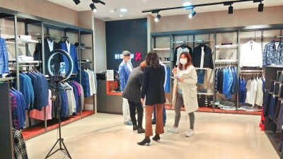 商场内,各大品牌在店内直播卖货渐成常态,店员变身试穿员