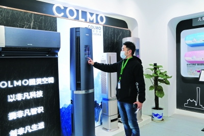 健康产品日渐受到顾客青睐,图为顾客正在打量格力“COLMO”AI智能空调