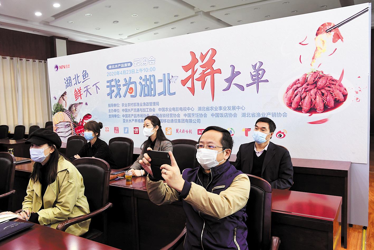 4月23日,“湖北水产品直销云购会”大型线上水产品产销对接活动,签约水产品4250万斤,金额达4.2亿元。(湖北日报全媒记者 陈勇 通讯员 王玲 摄)