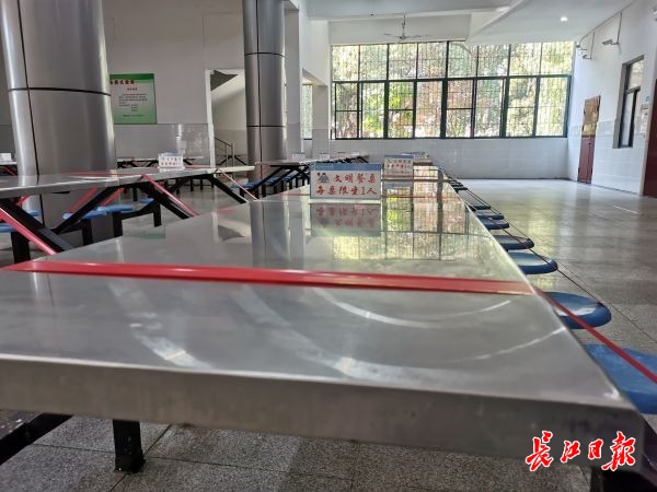 洪山高中食堂,学生将单人单桌就餐 记者吴曈摄