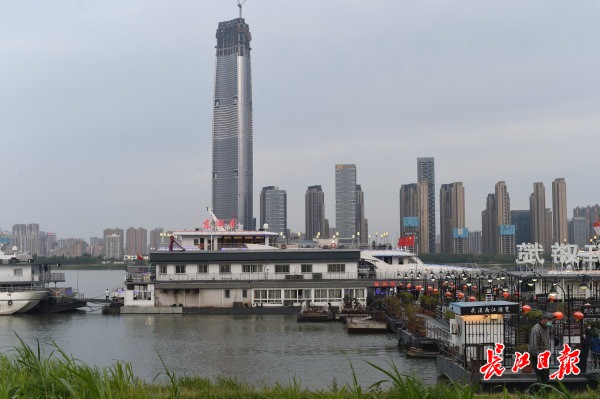 长江网4月25日讯 2020年4月25日,停航95天的武汉两江游览游船正式复航。19:20,随着一声汽笛响起,“东湖号”从粤汉码头发班。 (记者许魏巍 摄影报道)