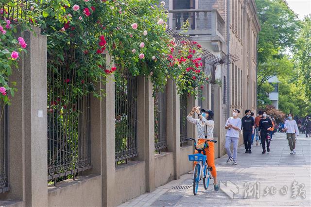 4月25日,正值周末,阳光明媚,市民游客在昙华林老街上休闲游玩。