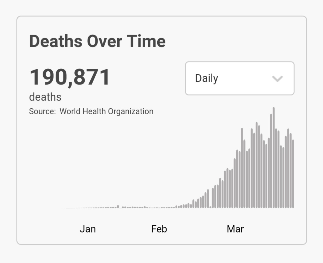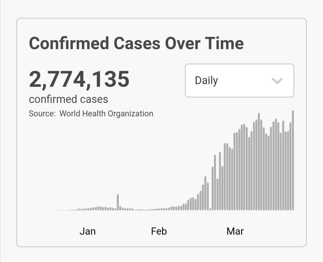 根据世卫组织最新实时统计数据,目前全球确诊新冠肺炎2774135例,死亡190871例,中国以外近269万例。(总台记者 朱赫)