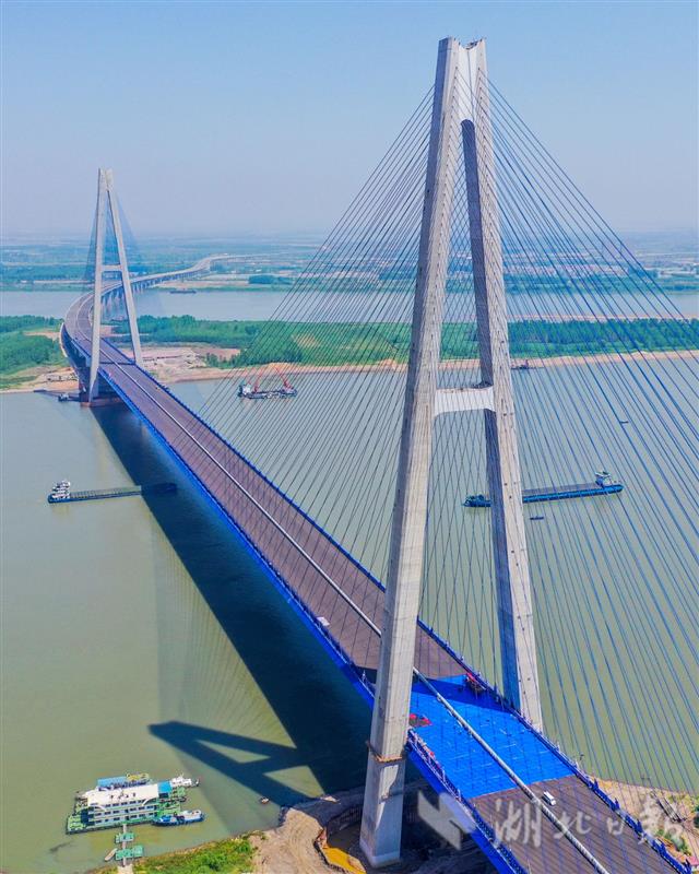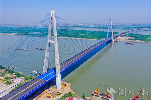 4月26日,主体工程已完工的武汉青山长江大桥横卧在长江之上。