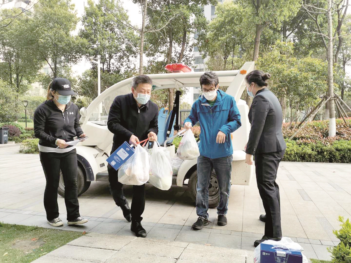 昨日,家住东湖黄鹂小区的肖嘉梅,再次通过“东湖云保供”小程序下单,购买了纸巾、红薯、番茄等生活必需品。志愿者送到小区门口,她戴好口罩下楼取货。