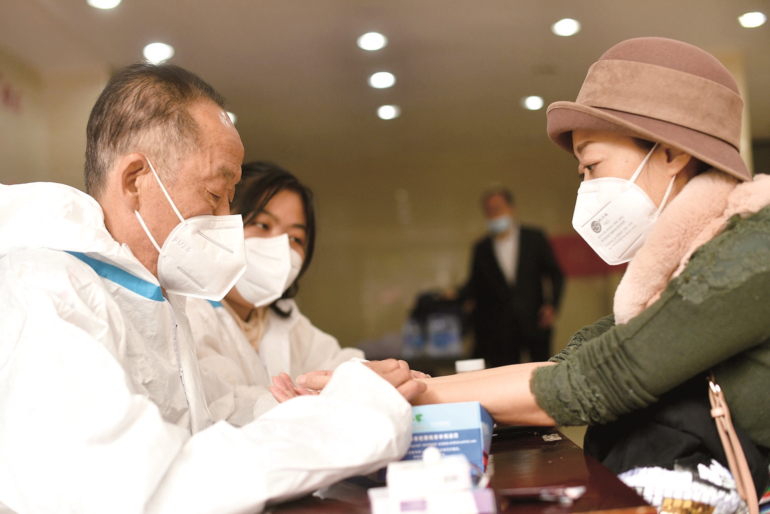 4月10日,记者跟随医疗队,来到东湖先锋社区珊瑚苑小区。医疗队用桌椅搭成临时就诊台,居民们戴好口罩排队就诊,医生给患者把脉、针灸、推拿、按摩、开药。66岁的周鑫是中华中医药学会中医药科普专家、全国公益楷模,2003年曾在广东深圳参与抗击非典,今年他毅然从北京赶到武汉参与战疫,每次义诊都有他的身影。“我最近胃痛,消化不良,疫情期间又不想去医院,没想到医疗队主动上门免费服务,真是太感谢了。”珊瑚苑小区15栋的陈冬梅激动地说。