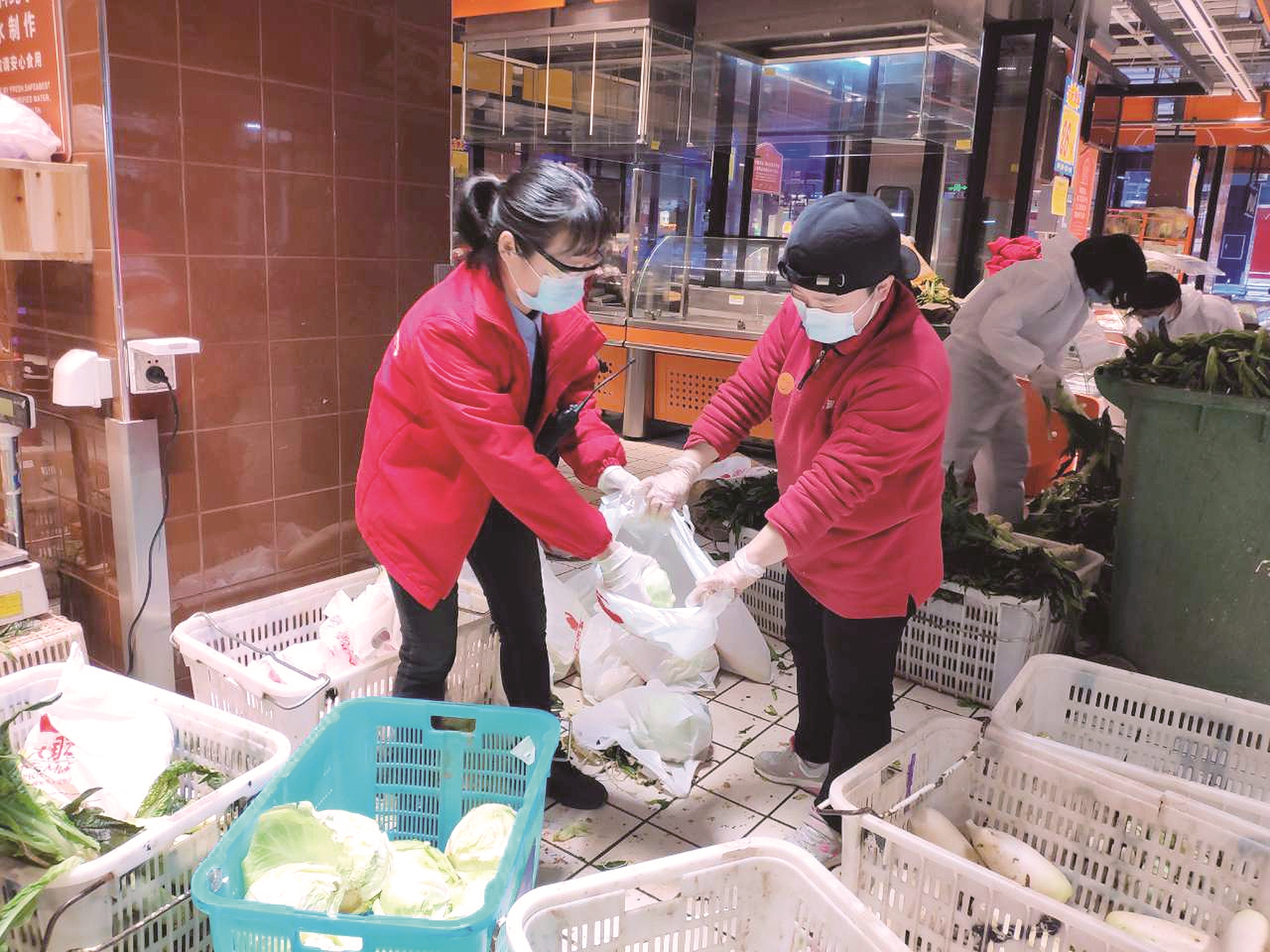 刚开始一段时间,每天到店的顾客很多,为了缩短顾客们的购物时间,所有菜品都会提前称重、打价签。那时,每天忙完手头的工作,她又主动加入到蔬菜操作间,协助同事们打包蔬菜,加班到晚上9点以后才能回家,更是常事。