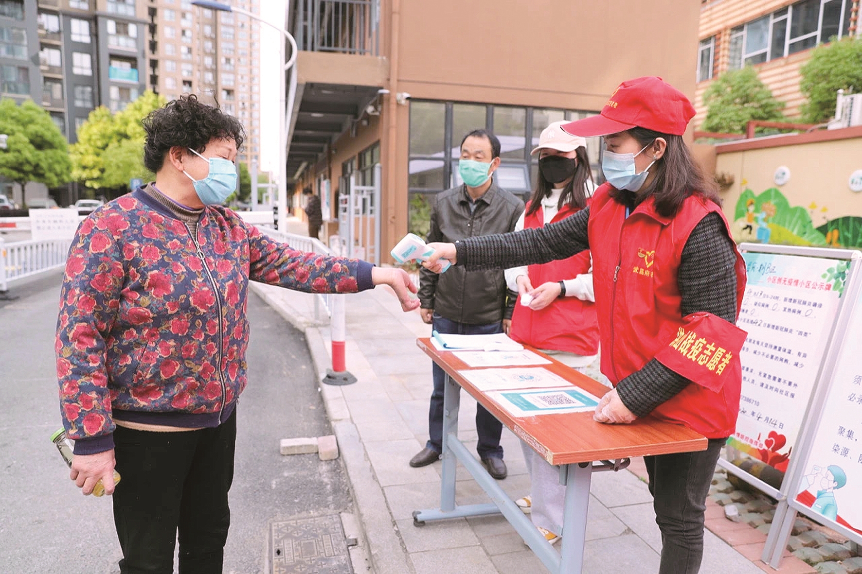 武昌府社区书记袁于纾为居民测体温