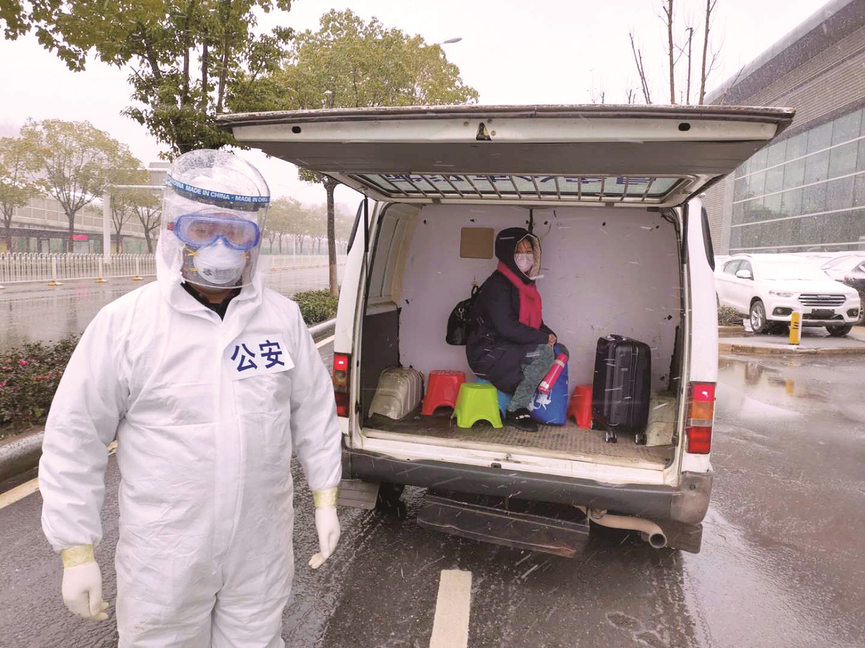 当晚风雪交加,气温极低,为了保持车内空气流通,车窗始终开着,不一会儿,唐进喜的全身都湿透了,鞋子里全是水。防护服不透气,里面已是汗流浃背,冷热交替十分难受,但他咬牙坚持着。经过一宿的往返接送,唐进喜凌晨4时才拖着疲惫的身躯回到派出所。汉阳区防疫指挥部又下达指令:十里玫瑰小区还有一名重症患者需连夜送到金银潭医院接受治疗。