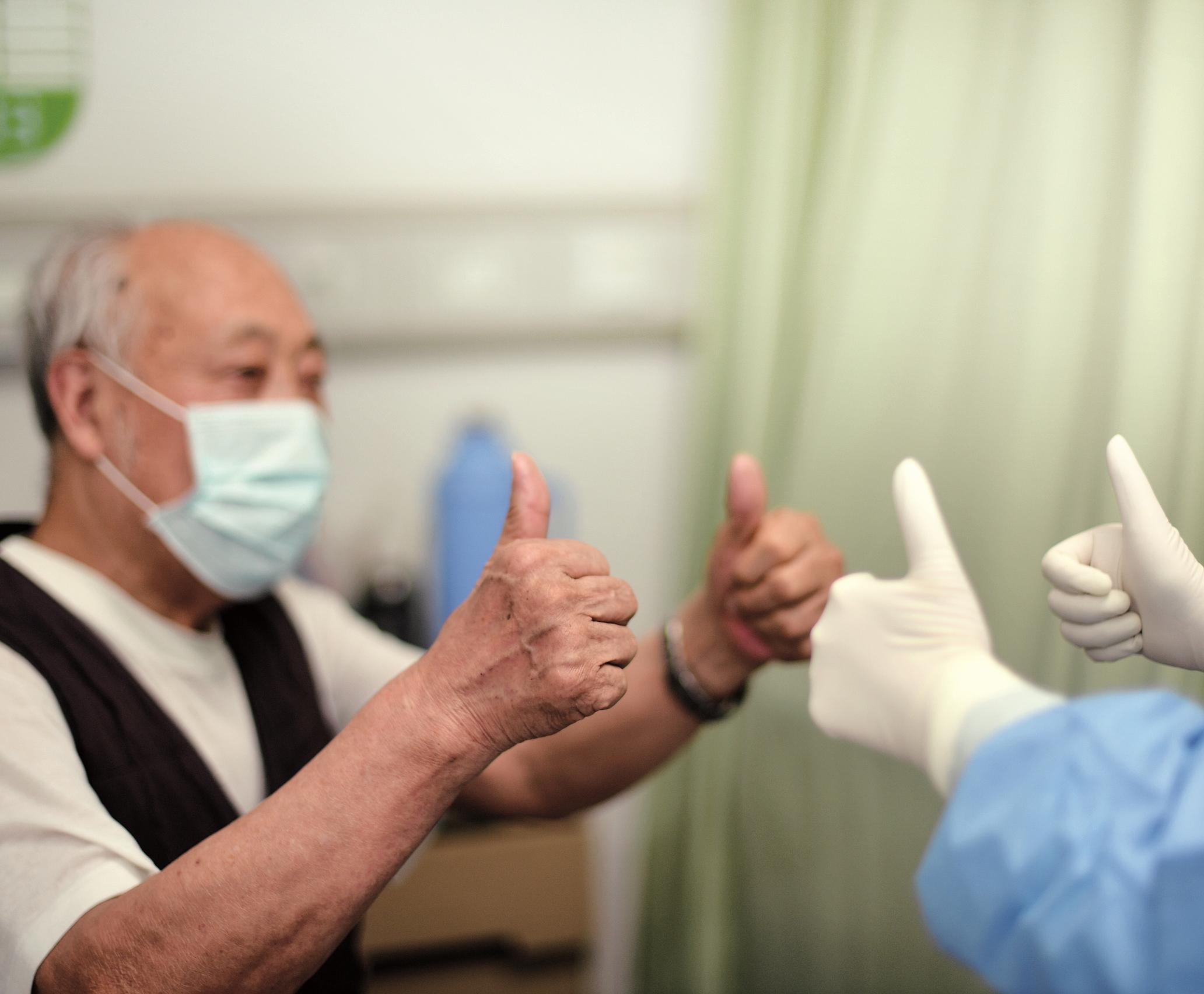 下午2时30分,硚口区尚义社区居民张婆婆,高兴地走出病房,并对医护人员伸出大拇指。她在肺科医院连续住院超过3个月,几十天里,医护人员如亲人般照料她,“我若不好好保重身体,都对不住他们。感谢国家给予我免费治疗,我一定要健健康康的。”