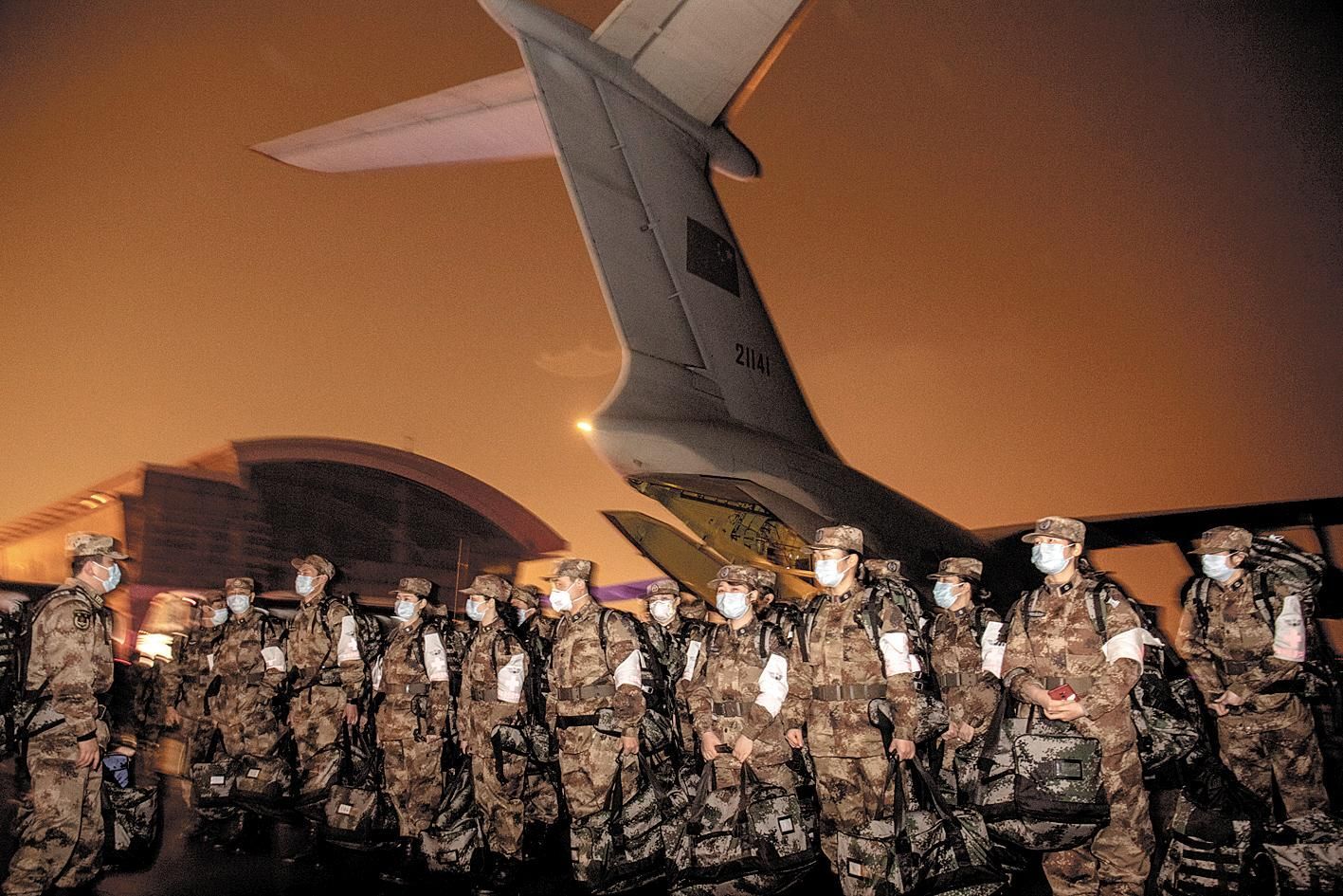 1月24日,3架空军运输机搭载着450名军医和大批医疗物资,降落在天河机场。(湖北日报全媒记者 魏铼 摄)
