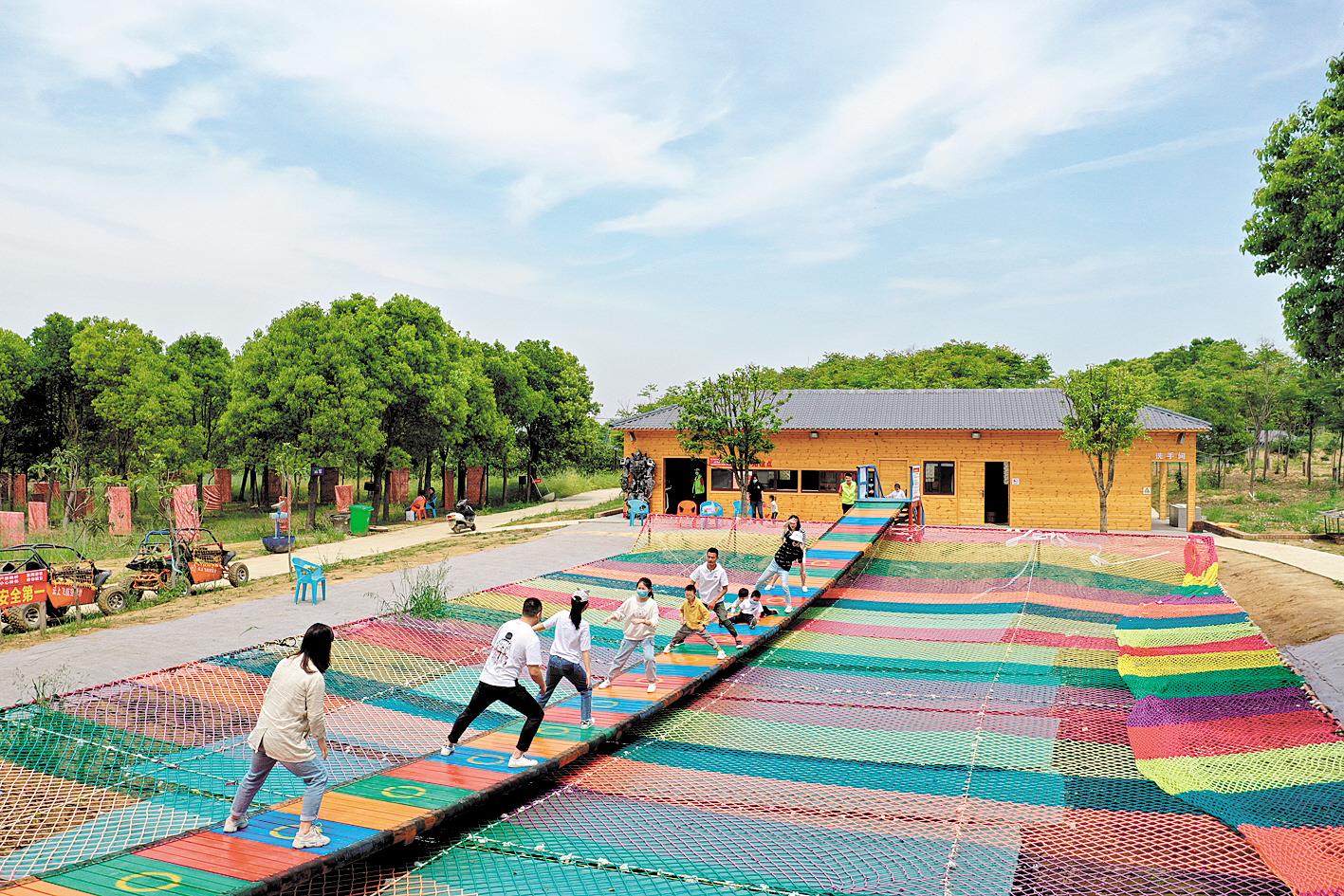 4月25日,荆州区八岭山镇铜岭村蔬菜主题公园内的“网红桥”吸引游客体验。当天,荆州区邀请100名机关干部开展为期2天的乡村旅游体验活动,征集好建议、金点子,不断提升乡村旅游品质,为即将到来的“五一”旅游旺季做好准备。