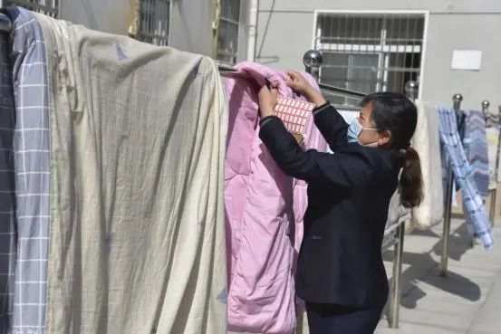 据介绍,26日该校共有5栋宿舍楼进行了晾晒。其中,东区在东2栋、桂苑北楼、元宝山3栋晾晒,共89床。西区3栋,共50床。南湖9栋,共计21床。宿管员表示,因为疫情期间同学们长时间回不了学校,大家都很愿意为有需要的同学提供力所能及的帮助。晾晒被子及收被子的照片已经发到学生群里,告知同学。