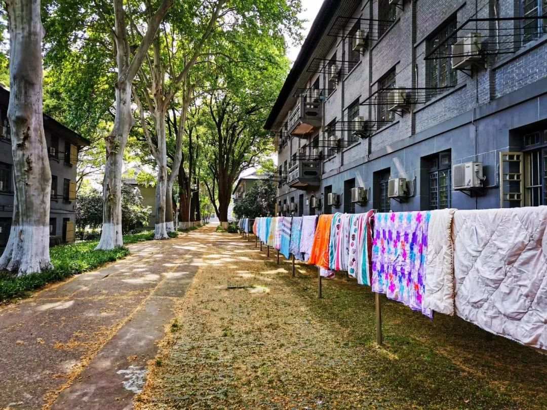 由于受到疫情影响,武汉高校至今不能开学。为确保广大学生的生命安全,华中师范大学目前仍采取封闭式管理,禁止学生返校。从今年1月放寒假到现在的三个多月,全校学生宿舍始终处于严格封闭状态,没有开门开窗通风,学生放置在寝室内的部分物件如床上用品等受到了不同程度的潮湿影响。4月26日起,华中师大学生宿舍服务中心开展了“为同学们义务晾晒被褥”的活动。