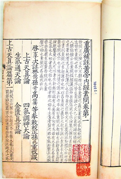 明嘉靖二十九年重广补注黄帝内经素问二十四卷,甘肃省图书馆藏。《黄帝内经》提出对瘟疫要早发现早治疗,治疗后防止复发。