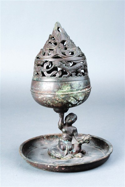 西汉鎏银骑兽人物博山炉,河北博物馆藏。1968年,河北满城陵山二号汉墓发掘出土。在西汉,人们喜爱焚香熏烟,来驱瘟防疫,养生祛病。