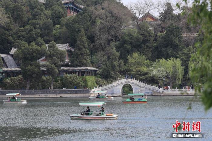 今年4月,北京北海公园内的游船。中新社记者 贾天勇 摄