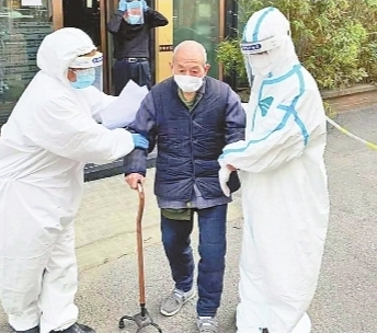 “返院要做3项检查,我们也放心些。”不久前,养老院通知周先生的母亲到医院做核酸、血清抗体和CT检查。3项检查正常,4月24日,周先生将母亲送到了养老院门口,养老院工作人员立即上前拿出额温枪测量体温,对老人身上的衣服和携带的物品消毒后,周先生的母亲顺利返院。“母亲以前住二楼,现在要在三楼独立区的单间里观察14天,这样管理蛮放心。”周先生说。