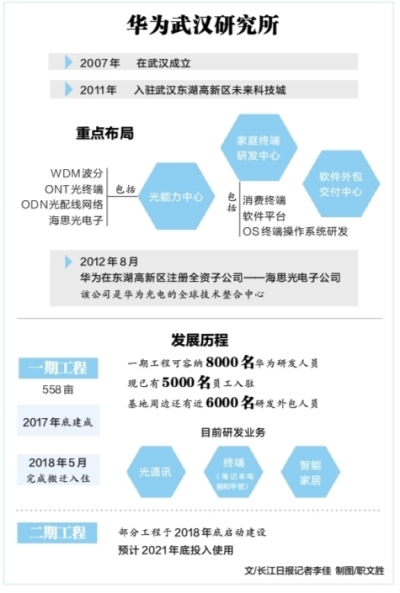 华为从2007年武汉研究所成立以来,不断加大在武汉的投入,重点构建光能力中心、家庭终端研发中心、软件外包交付中心。