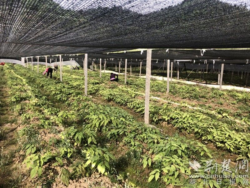 荆楚网客户端—荆楚网消息(通讯员 龚运军、杨雪、许光泽)“今年的苗子长势比往年要好!你看这一株上长出好几串花序,叶厚茎壮,将来结出的种子肯定不会小,今年注定又有一个好收成!”4月29日,在丹江口市丁家营镇铜架山村淫羊藿中药材种植基地,负责人赵先才像爱抚着自己“心肝宝贝”一样,用手托起一株淫羊藿的花序向慕名参观的客人介绍着。