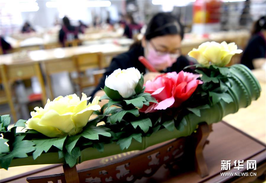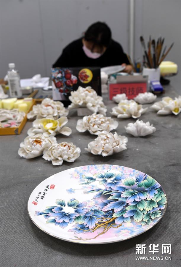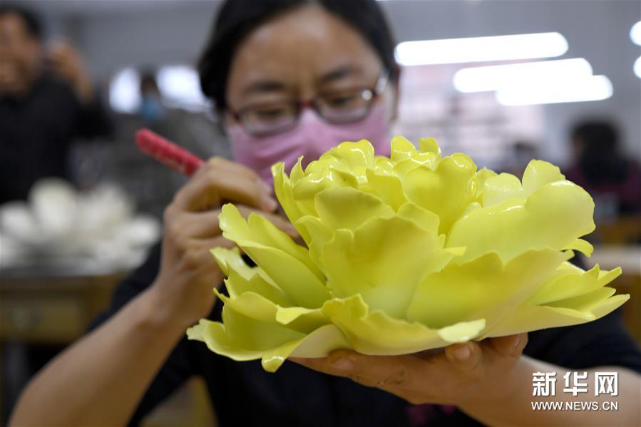 艺术工作者在洛阳李学武牡丹瓷园制作牡丹瓷(4月26日摄)。 新华社记者 朱祥 摄