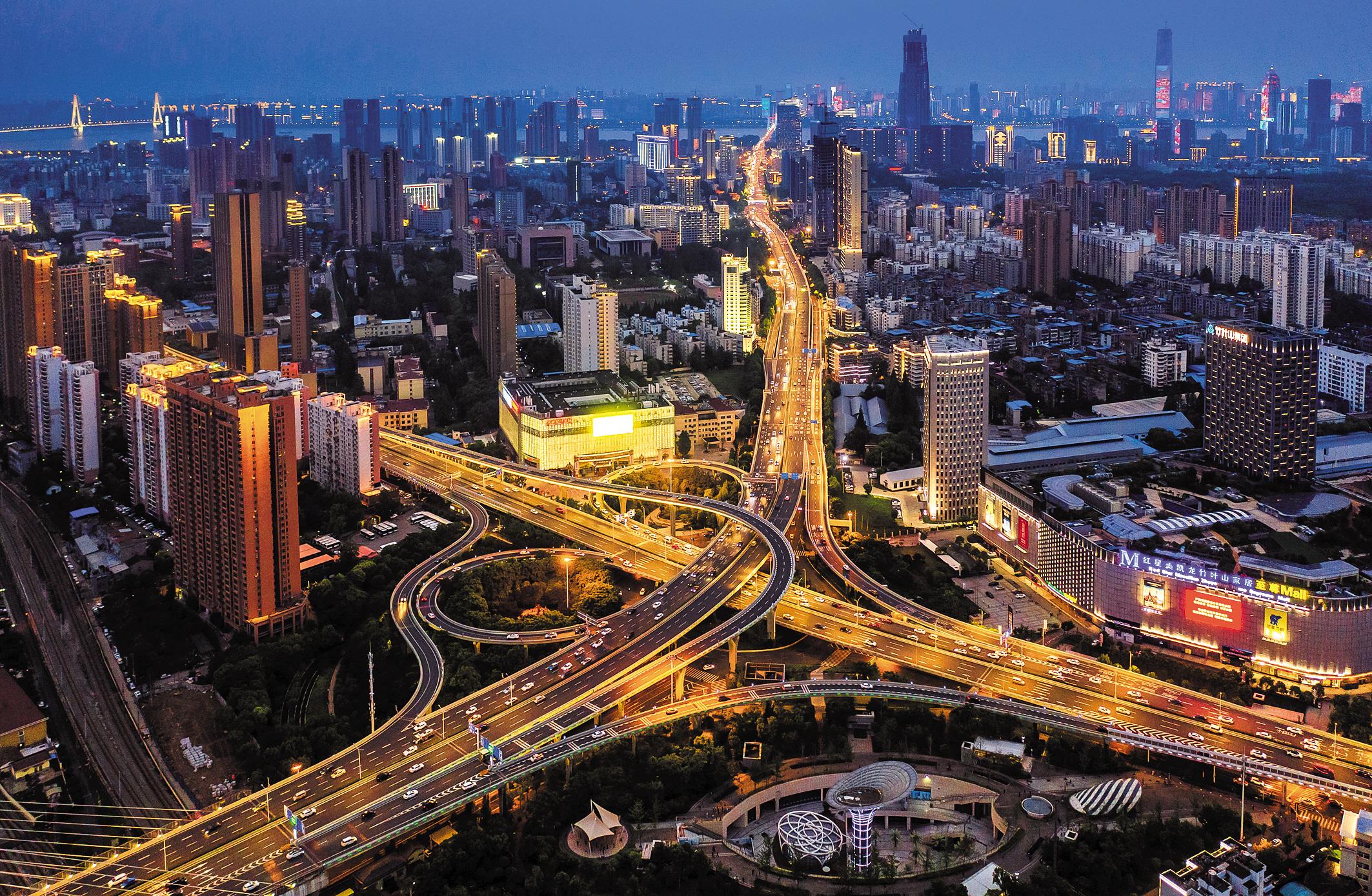 5月8日傍晚,武汉金桥大道立交桥上车辆往来穿梭。这一天,正值武汉“解封”一个月,也是湖北突发公共卫生事件应急响应级别下调至二级一周,湖北疫情防控形势持续向好,经济社会秩序正加速恢复。