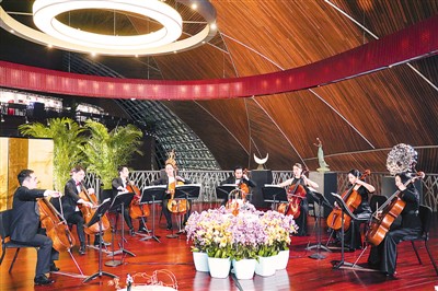 “春天在线”四场线上音乐会,无论从音乐呈现方式、场地安排、曲目以及导赏设计上,无一不体现出精益求精的艺术态度。在音乐呈现上,从最常见的弦乐四重奏到木管五重奏、钢琴四重奏、打击乐二重奏、圆号三重奏、大提琴八重奏、室内乐乐队……丰富多彩的形式令人耳目一新。在演出场所上,精心挑选的大师俱乐部、四层艺术空间、花瓣厅等不同场地,让屏幕前的观众得以“走进”大剧院,充分沉浸在唯美考究的音画中。每场演出特别安排的导赏环节,也让乐迷在欣赏音乐之余,收获更多音乐知识与音乐故事。