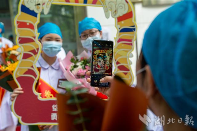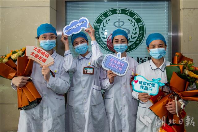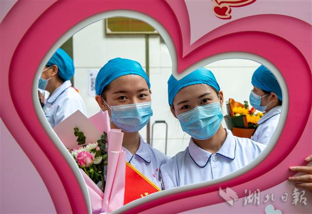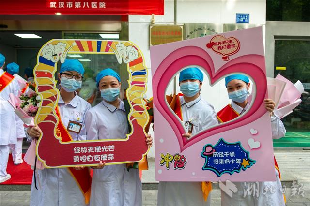 5月11日,武汉第八医院科教楼,护士合影留念。