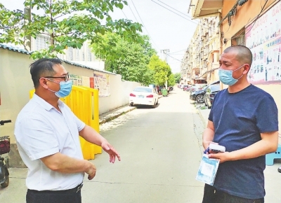 社区工作人员正准备汇报防控情况,林文书连忙打断:“我不听你们说,我要听居民怎么说。”此时,一位头发花白的婆婆正站在楼栋口张望,林文书走上前与老人攀谈起来。“婆婆,最近出门多不多?门卫管得严不严?出入都有测体温吗?”老人回答说:“社区管得蛮严,平时也总劝我们少出门。”林文书嘱咐道:“老年人是易感人群,一定要格外注意,口罩防护绝对不能少。”