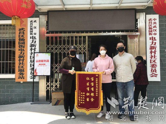 为表示感谢,4月8日李晨夫妇给社区送来了这面印有“宝宝有粮食 社区有担当”的锦旗。
