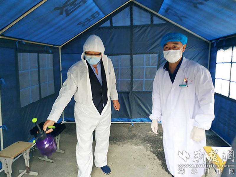 荆楚网客户端—荆楚网消息(通讯员 许光泽)“家长你好!孩子送到这里就行了!校园实行封闭式管理,家长不能进入校内。”“同学,请把书包放在这里喷杀消毒。”“请等一等,测量体温、登记。”“请把双脚踩入盆里消毒,进入校园要保持一米以上的距离”……5月13日上午10时,经过近一周时间的紧张筹备,参考借鉴外校经验,丹江口市丁家营镇九年一贯制学校初三学生入学疫情防控模拟演练在紧张有序气氛中拉开帷幕。70多名教职工、医务工作者、学校保安、后勤保障人员参与。
