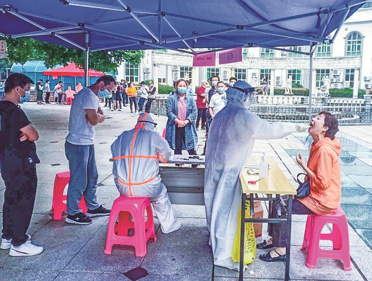 昨日,武汉市洪山区和平街欧洲花园社区居民接受新冠病毒核酸取样 楚天都市报记者李辉摄
