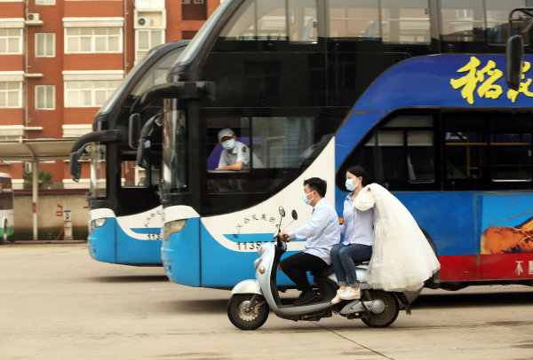 从早上5点前到阳逻公交场站,一直到中午12点把早班上完,朱栋、周佩才赶回家里参加“云婚礼”