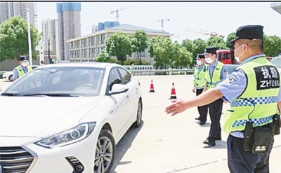 “您好,请出示身份证和驾驶证、配合我们扫码、测量体温……”5月19日中午,气温30℃,汉洪高速小军山收费站前,汉洪公安检查站民警郑平检查完一辆进城小车后,汗水从后背渗出。