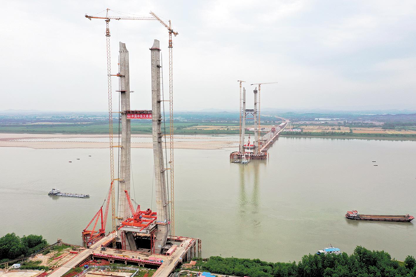 5月13日,赤壁长江大桥架梁吊机安装完毕,开始主跨钢混结合梁施工。据介绍,自3月中旬全面复工以来,中铁大桥局项目部想方设法加快施工进度,4月底两座主塔先后封顶。目前,施工单位正继续全面提升作业效率,确保今年底大桥合龙。