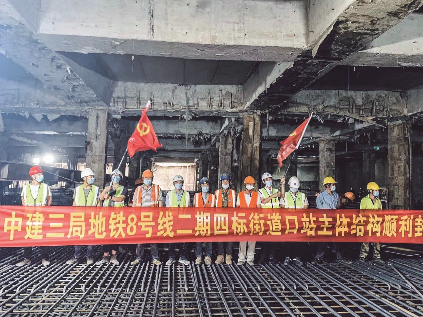 楚天都市报讯(记者黎先才 通讯员王桂苹 袁永华 王淑芹)昨日,随着最后一方混凝土浇筑完毕,在建的武汉地铁8号线二期街道口站主站房主体结构封顶。这也是该工程中最后一个主体封顶的车站,标志着全线车站主体已全面封顶。