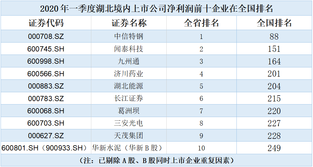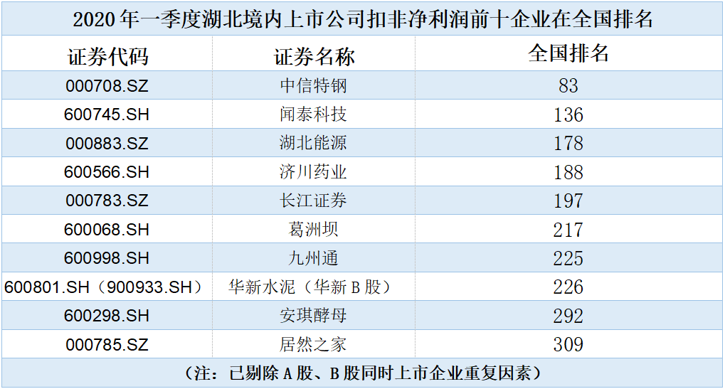 湖北境内上市公司扣非净利润排名前十企业,在全国的整体排名也更好。其中,前200名企业有5家。此前,净利润排名前十企业中,前200名企业里湖北只有3家企业上榜。