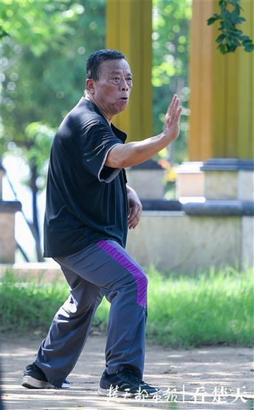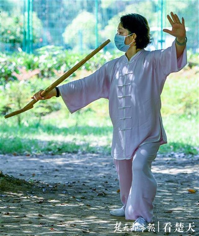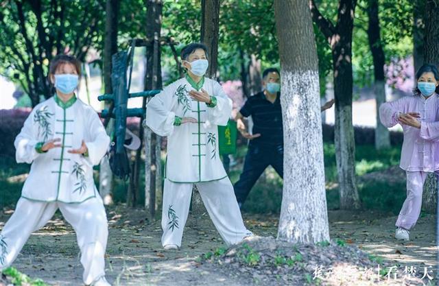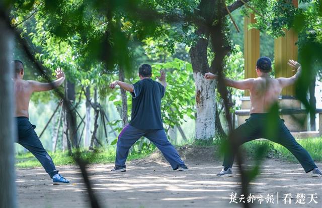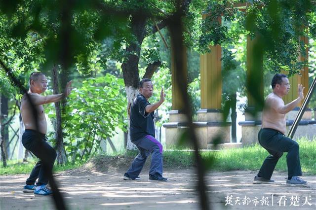 5月23日,周六的武汉天气晴好。当天上午,记者在汉江江滩硚口段看到,中老年市民晨练方式五花八门:他们有的在树林里练起杨氏太极,有的在亭子边上打起陈氏太极,有的在广场上放飞盘鹰,有的在空地上跳起广场舞,有的甚至学起小朋友和年轻人玩起轮滑。