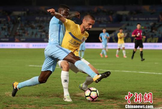 资料图:深足外援普雷西亚多(左)在比赛中。陈文 摄