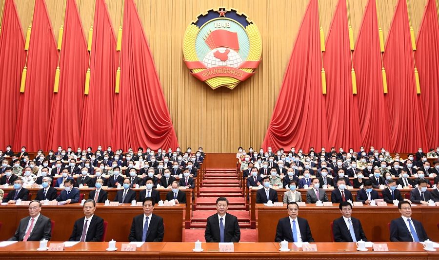 5月27日,中国人民政治协商会议第十三届全国委员会第三次会议在北京闭幕。这是习近平、李克强、栗战书、王沪宁、赵乐际、韩正、王岐山等在主席台就座。 新华社记者 谢环驰 摄